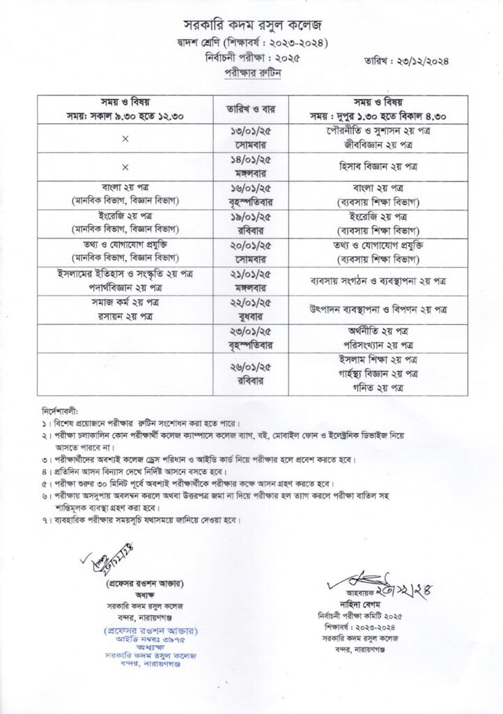2023-2024 শিক্ষাবর্ষের দ্বাদশ শ্রেণির নির্বাচনী পরীক্ষার রুটিন।