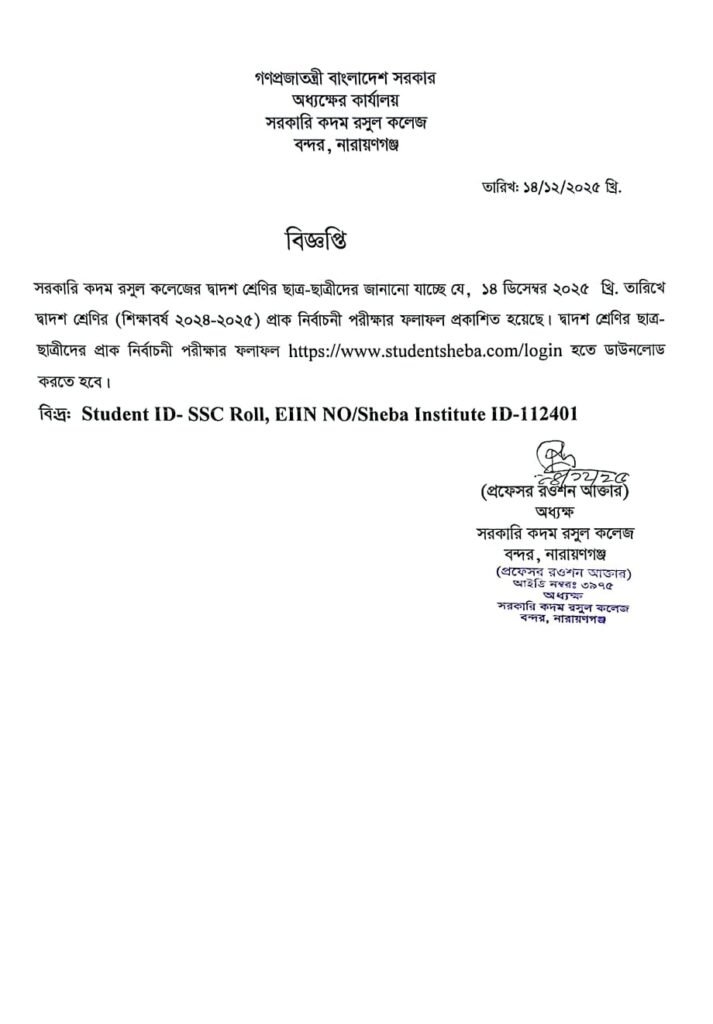 2024-2025 শিক্ষাবর্ষের দ্বাদশ শ্রেণিল প্রাক-নির্বাচনি পরীক্ষার ফলাফল প্রকাশ…