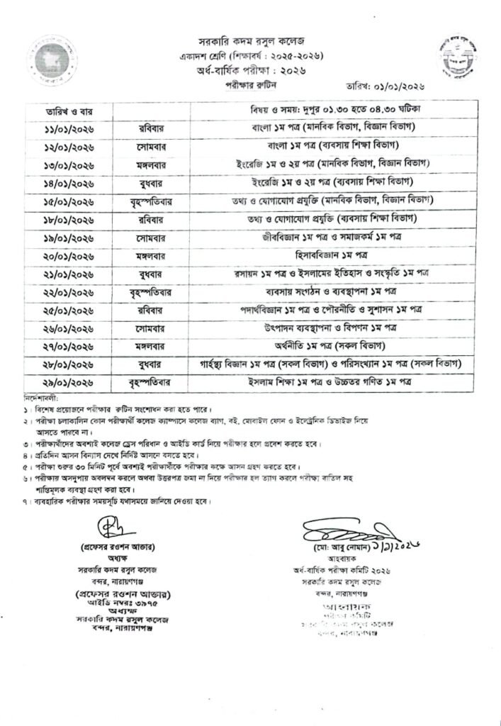2025-2026 শিক্ষাবর্ষের একাদশ শ্রেণির অর্ধ-বার্ষিক পরীক্ষার রুটিন…